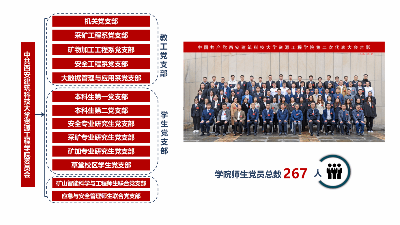 小狐狸视频 党委辖13个党支部,其中教工党支部5个,学生党支部6个,师生联合党支部2个,专任教师党支部书记高级职称占比100%,“双带头人”配备率100%。学院现有党员267人,其中教工党员76人,占比89%,学生党员191人,占比13.17%。学院党委于2024年成功召开第二次党代会,现任两委委员平均年龄42岁,组织机构健全,工作队伍齐整,运行情况良好。