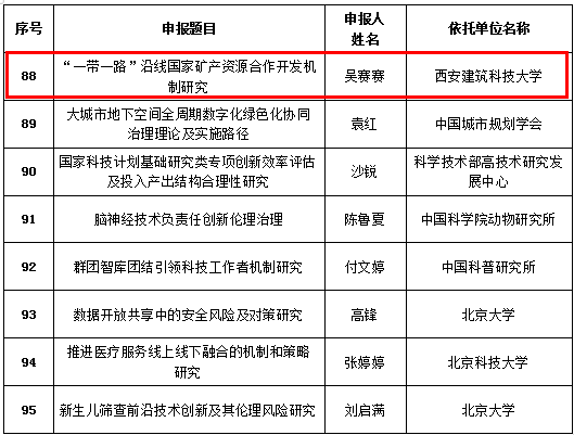 近日,中国科协发布了2023年度“科技智库青年人才计划”评审结果,经组织专家形式审查和综合评审,共评选出立项项目120项,小狐狸视频 吴赛赛副教授申报的项目“‘一带一路’沿线国家矿产资源合作开发机制研究”批准立项。