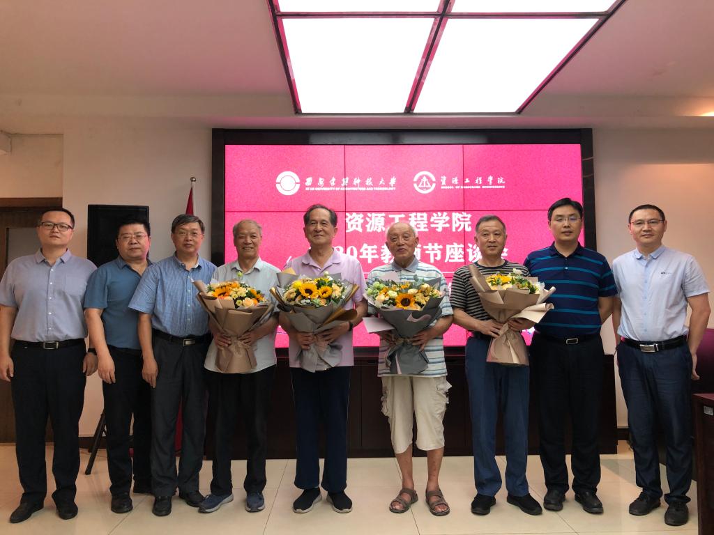 召开“弘扬师德、传承师风、铸就师魂”主题教师代表座谈会。原地质专业陈代忠、原矿加专业金冠章、原矿加专业谢建宏、原资源系党总支副书记石荣业四位老教师,学院全体班子成员、各教师党支部书记以及近五年入职的二十余位青年教师参加了此次座谈。座谈由学院党委副书记、副院长、工会主席刘冠主持。