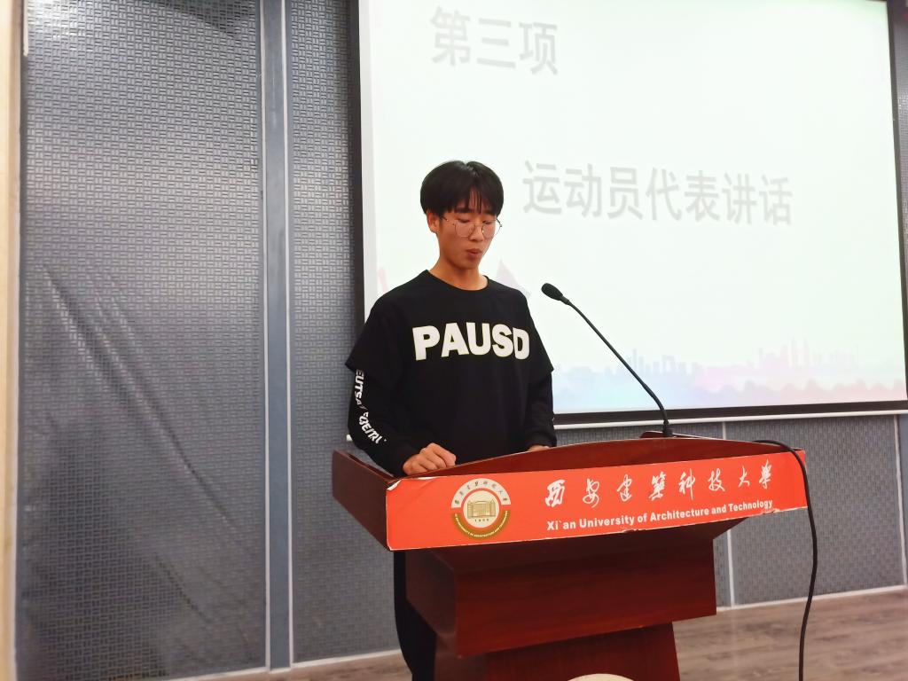 党组织副书记刘冠、学生与校友工作办公室主任李明、辅导员徐毅以及全体运动员和工作人员参加了此次大会。