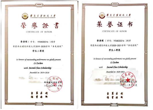 获奖情况:获第十一届全国高等学校采矿工程专业学生实践作品大赛三等奖和二等奖各1项;2021-2022学年“争先创优”优秀学生干部二等奖。