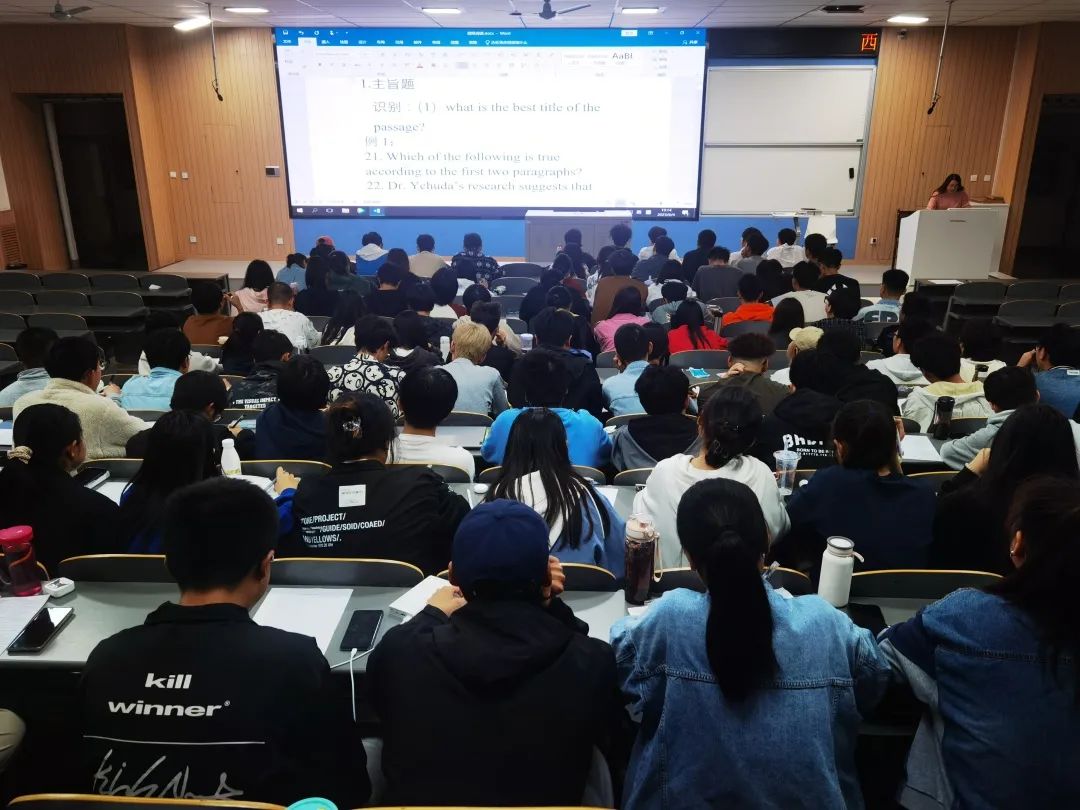 于学府城14-101开展“四六级通关助力营”第三讲——四级阅读技巧,本次讲座邀请文都考研英语辅导名师孙悦讲解,本科生2021级、2022级四级备考学生参加。