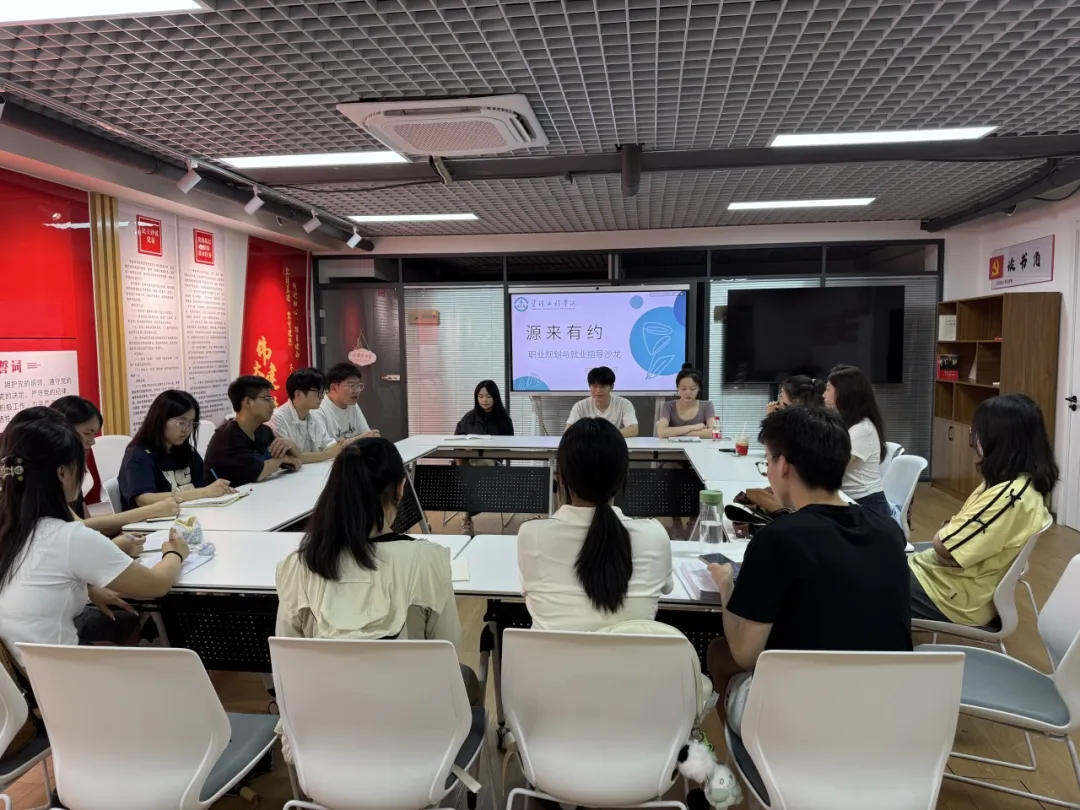 于6月6日下午15:00在雁塔校区“党建活动中心”开展第五十三期“源来有约”—职业规划与就业指导沙龙。特邀2021级黄靖荃、王温惠子、汪海程三位优秀学生代表进行经验分享,部分2022级学生参与,活动由高泽光同学主持。