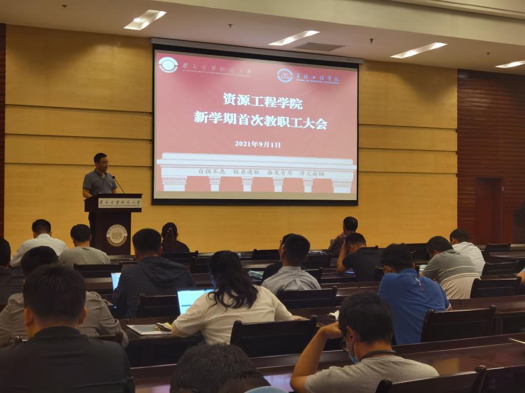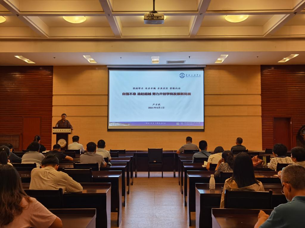 在工科楼三楼会议室召开全院教职工大会,学院党政领导班子成员和全院教职员工参加会议。会议由学院党委副书记李枚阳主持。