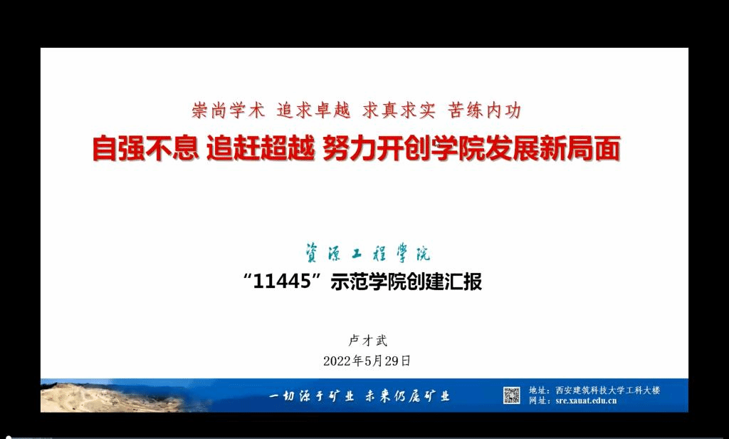 会上,院长卢才武详细解读了学院“11445”示范学院创建方案。他指出,学院将对标“十四五”建设目标,从优化管理机制、加强师资队伍建设、创新人才培养模式、全面提高研究生教育质量、实施“科技创新攀登计划”等方面开展示范学院创建工作,奋力推进学院实现跨越式发展。在方案解读过程中,院长卢才武特别强调,全院教职工要凝心聚力,以破釜沉舟、背水一战的精神,重点做好2023年矿业工程博士点申报工作。