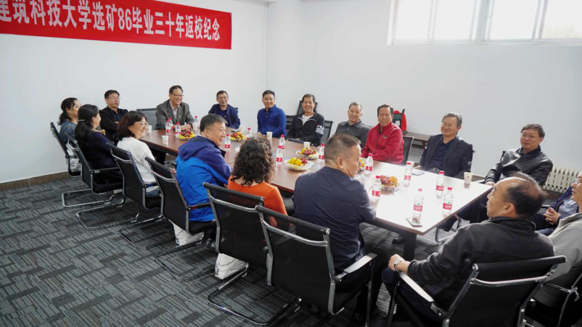 选矿1986级校友毕业三十周年返校座谈会在工科楼413会议室举行。学校创新创业办公室主任何廷树,资源学院党委书记魏彦民,院长卢才武,党委副书记、副院长刘冠,原采矿系教师石荣业、边志玉、刘发展以及校友代表共计20余人参加此次座谈。座谈由学校发展规划处处长、高教研究所所长86级校友赵光华主持。
