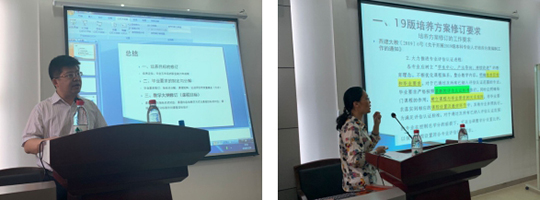 随后,崔晓红老师结合工程教育专业认证标准,对培养目标修订、毕业要求的制订与分解、课程矩阵、达成度评价权重确定、教学大纲修订等方面工作要求及注意事项,结合实例进行了解读。