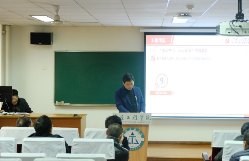 学院领导班子成员对照自身岗位职责和工作要求,依次上台述职汇报。党委书记魏彦民从“不忘初心、牢记使命”主题教育;尽职履责,落实党建工作任务;以党建保稳定促发展,事业稳步前进等三个方面,简要介绍了一年来的工作。