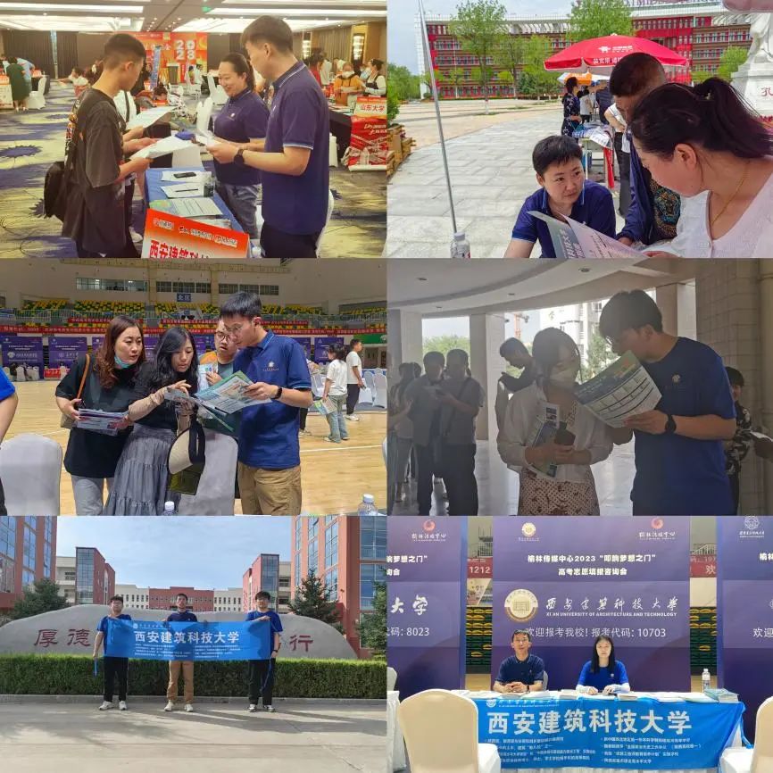 在乌鲁木齐高考招生咨询会上,招生工作人员主动对接考生,传递官方信息,与广大考生、家长近距离交流,解读最新高考政策,宣传建大办学特色,面对面为考生答疑解惑。赴榆林地区的招生工作人员分别前往榆林中学、榆林第一中学、榆林高新中学、榆林三中和榆林职业技术学院高考咨询点,向众多考生和家长详细介绍了学校学科特色、专业优势、历年录取分数线、2023年招生政策和学生就业升学等方面的内容。招生宣传组结合考生的成绩和位次给出合理的建议,进行一对一高考志愿填报咨询服务,并鼓励广大考生积极报考我校。