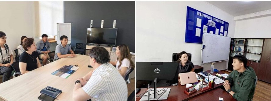 国际交流工作专项助理吴赛赛副教授等一行四人先后访问了哈萨克国立师范大学(Abai Kazakh National Pedagogical University)和哈英理工大学(Kazakh-British Technical University),并与哈萨克国立师范大学国际合作部部长Zhadyra Bainazar、哈英理工大学继续教育学院院长Nazar Bekov和国际处副主任Gaukhar Turganbekova开展座谈交流。