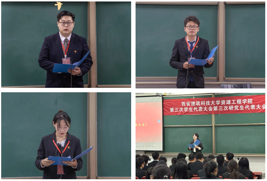 随后,研究生会主席团成员赵坤庆代表学院研究生会作了题为《自强不息 锐意进取 奋发有为 淬火成钢 领跑青春路 勇为时代先 绽放梦想 让奋斗成为青春最亮丽的底色》的工作报告,他从回顾过去,我们携手同行和展望未来,我们精益求精几部分回顾了学院研究生会开展的工作与活动,同时号召同学们应勇担使命、牢记职责,展现资源学子良好精神风貌和时代风采做好服务。