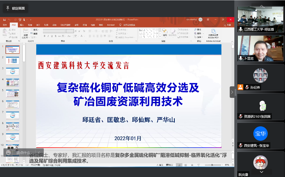 特邀江西理工大学副校长邱廷省教授通过线上腾讯会议为我校师生作了题为“复杂硫化铜矿低碱分选及矿治固废资源化利用技术”的学术报告。本次报告会矿业类及相近学科专业教师教师、研究生共计百余人参加,报告会由副院长卜显忠主持。